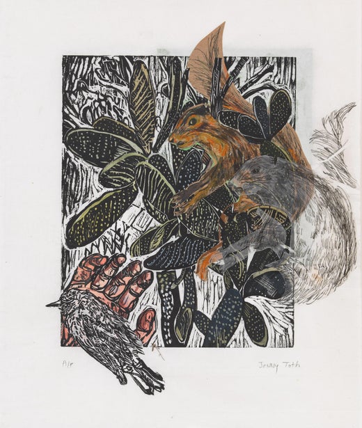 Jenny Toth trabaja en Manhattan, a veces en su apartamento, a veces en su estudio, y a veces puedes verla dibujando en el zoo. Es Profesora Asociada de Arte en el Wagner College, donde enseña pintura, dibujo y otras aventuras creativas desde 1999. Jenny se licenció en el Smith College en 1994 y obtuvo un máster en Bellas Artes en la Escuela de Arte de Yale en 1998. Estudió en Yale de 1994 a 1995, y después hizo una pausa de dos años para asistir a la New York Studio School de 1995 a 1997, donde estudió con gente increíble como Graham Nickson, Mercedes Matter y Charles Cajori. Volvió a Yale en 1997-1998. Jenny también ha enseñado en el Smith College y en SUNY Potsdam. Ha viajado sola a lugares tan lejanos como Groenlandia y Papúa Occidental, y pasa regularmente temporadas en San Miguel de Allende (México) y La Jolla (California). Vive con sus dos hijos, su marido y sus perros Muppet y Mr. Scruffles. Sus dos pasiones de toda la vida son el arte y los animales. Espera pasar el resto de su vida viviendo aventuras, aprendiendo y jugando al NYTimes Spelling Bee. Conocida por pintar escenas narrativas fantásticas, a veces autorreflexivas, con un toque de humor, Jenny Toth trabaja a partir de la observación directa, a veces con la ayuda de elaborados decorados y atrezo. Normalmente, las escenas que transcribe sobre lienzo o papel constituyen una variación del autorretrato, derivada de su interés por cómo las mujeres eligen retratarse a sí mismas frente a cómo los artistas masculinos las han representado tradicionalmente. La inclusión de "defectos" como un dedo deformado o unas piernas velludas subraya su prima a la honestidad por encima de los vanos intentos de ajustarse a los cánones de belleza convencionales. A través de retratos de sí misma escondida tras un cactus, la red de un pescador o una máscara, Toth explora temas de lucha interior, miedo a la soledad y recelo al compromiso íntimo. Más tarde su obra incluye las alegrías y frustraciones de la maternidad y sentimientos complejos representados con animales como fuente.