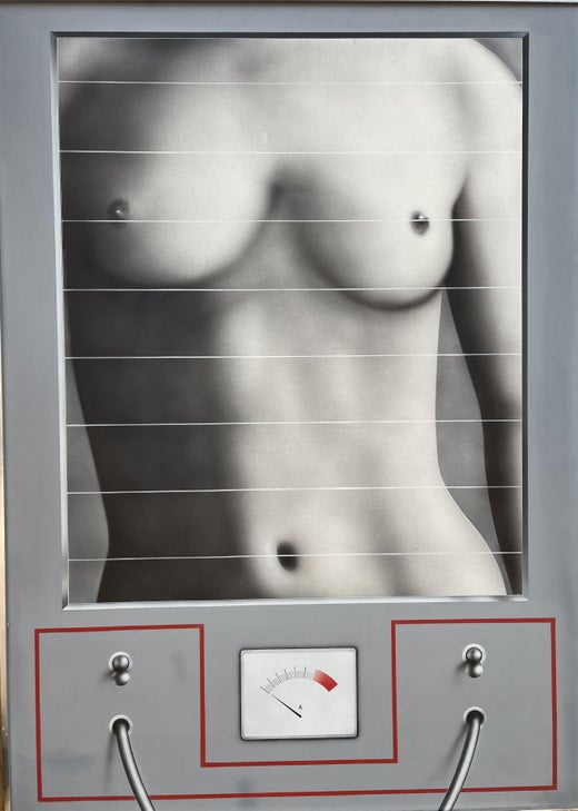 Peter Klasen es un German artist que se instaló en París en 1959. Se unió a las Vanguardias internacionales en París, huyendo de la Alemania derrotada y dividida de la posguerra. An He se cuenta entre los artistas que renovaron la pintura figurativa en oposición a la abstracción. Sus cuadros se reconocen por el uso del aerógrafo. Sus obras representan cuerpos femeninos entrelazados con objetos sanitarios, maquinistas y utilitarios. An He describe su visión de la sociedad cambiada por la modernidad y los conflictos de esta vida moderna.