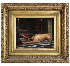 Atribuido a George Earl (inglés, 1824-1908) Retrato de un perro salchicha Óleo sobre lienzo, formato circular Hacia 1870-1880 Firmado en el centro izquierda (como visible) ⸻ Retra...