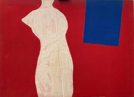 Sylvia RutkoffCollage de tela roja con azul, estilo abstracto, años 70, sin firmar, 38x281970s