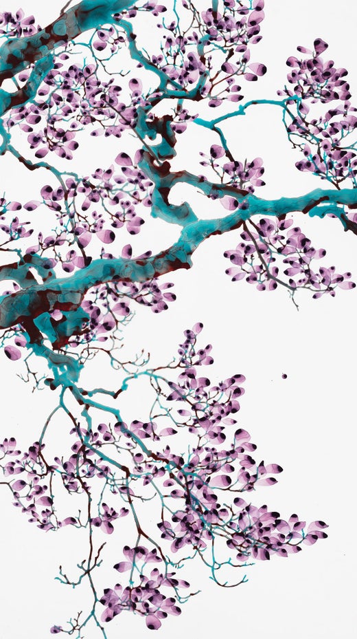 Jackie Battenfield es conocida por sus luminosas pinturas. Sus cuadros más recientes tienen como tema las gráciles ramas, el follaje y las flores de los árboles. Su devoción por representar su forma natural se ve aumentada por su pericia en el manejo del color y la pintura. Las pinturas son a la vez precisas, abstractas e imaginativas. Los colores de Battenfield, mezclados con maestría, irradian elegancia sobre un crudo campo blanco. Su obra única está pintada sobre mylar semiopaco. Cada cuadro se termina con un montaje personalizado sobre acrílico transparente para amplificar la translucidez de sus materiales.