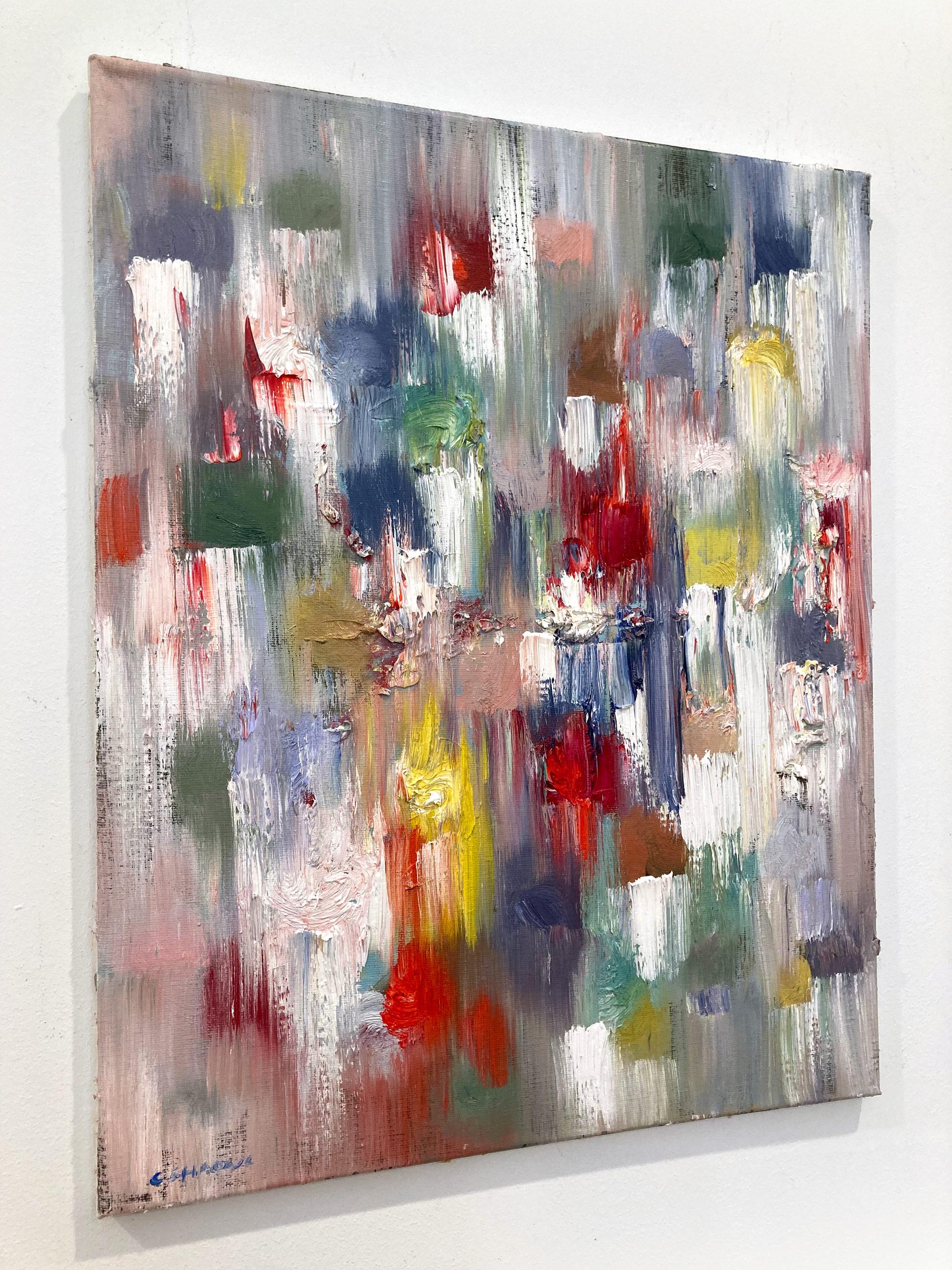 Cindy Shaoul"Goteo de puntos - Luces de Tokio" Pintura al óleo abstracta sobre lienzo, colorista y viva2025