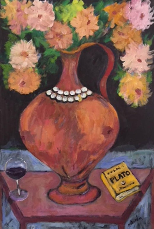 Elliot Gordon (estadounidense) , "El jarrón de cristal", Acrílico contemporáneo sobre lienzo, 48 x 36, Lienzo, Principios del siglo XXI, 2014