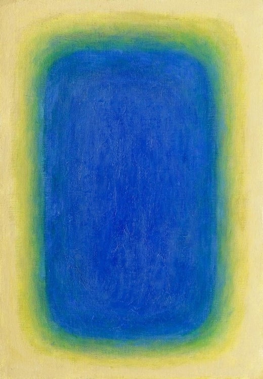 Un pintoresco amarillo canario ortogonal flota sobre un enérgico fondo de carboncillo con reflejos añil en este atrevido lienzo. El artista Ivo Stoyanov combina pintura acrílica, pol...