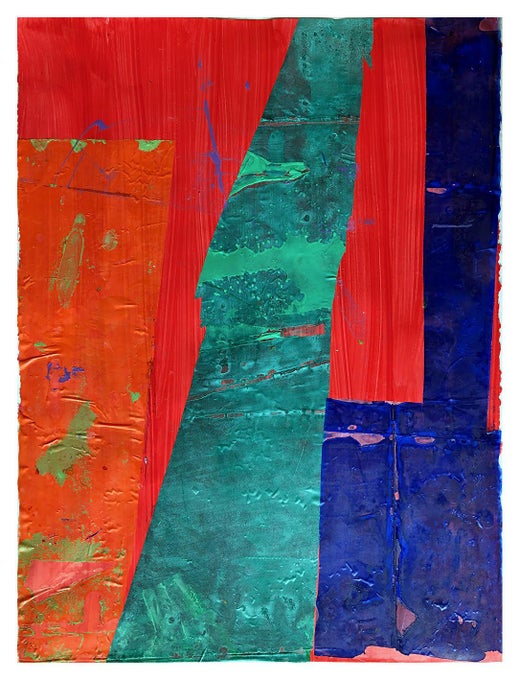 Innovando técnicamente, construyendo estructuras en el lienzo e impulsando la abstracción del color en sus propios términos: doblando, rompiendo, fluyendo y canalizando el color. El gesto amplio y las superficies activas y táctiles emergen del lienzo a través de su proceso experimental y su enfoque de los materiales, la aplicación y la composición.