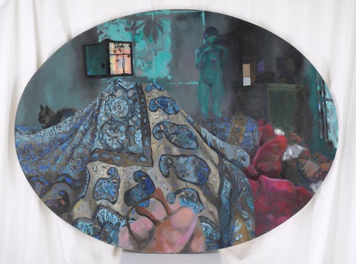 Un abstracto figurativo contemporáneo único sobre lienzo ovalado de Narcissus Rober...