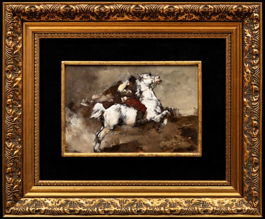 A Tutto Galoppo - Óleo italiano del siglo XIX de caballero y caballo de la Belle Epoque Society