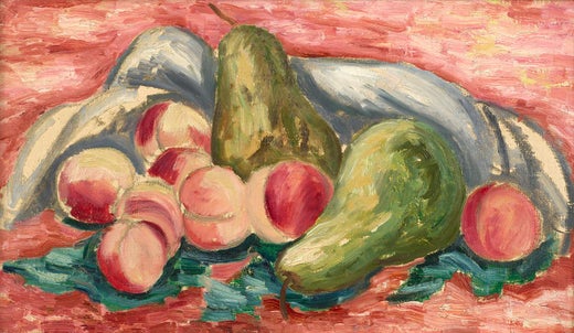 Bodegón fauvista de frutas de mediados del siglo XX en colores primarios