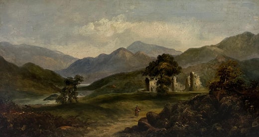 Artículos similares a Antiguas ruinas de un castillo en un paisaje de las Highlands escocesas Pintura al óleo del siglo XIX