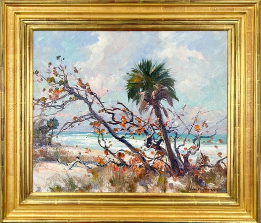 Emile Gruppe (1896-1978) fue un artista extraordinariamente prolífico. Estaba ante su caballete casi todos los días y creó miles de cuadros a lo largo de una carrera que duró 60 años. En su mejor momento, realizaba casi 200 óleos al año. Sin embargo, nunca ha dejado de encontrar público para sus representaciones de Nueva Inglaterra en otoño e invierno, o sus escenas portuarias de Rockport y Gloucester, en Massachusetts. Gruppe nació en 1896 en Rochester, Nueva York, en el seno de una familia de artistas: su padre, su hermano, su hermana y su sobrino eran todos artistas. Emile pasó su juventud en Holanda, donde su padre, Charles Gruppe, trabajaba como artista. Emile vivió en Holanda hasta los 17 años, cuando la familia regresó definitivamente a Estados Unidos para evitar la Primera Guerra Mundial. En Nueva York, Gruppe asistió a clases en la Academia Nacional de Diseño y en la Liga de Estudiantes de Arte, donde estudió con Charles Chapman y George Bridgman. También estudió con John Carlson en Woodstock, Nueva York, donde se aficionó a la pintura al aire libre. Carlson "me convirtió en pintor", dijo más tarde. Gruppe ayudó a fundar la Asociación Artística de Rockport en 1921, pero está más estrechamente vinculado a Gloucester, donde vivió desde aproximadamente 1940 hasta su muerte. Dirigió la Escuela de Pintura de Gloucester desde la década de 1940 hasta la de 1970 y contribuyó a convertir la zona de Rocky Neck, al este de Gloucester, en una colonia artística de fama mundial. La escuela contaba con un profesorado impresionante, pero las exuberantes demostraciones al aire libre del propio Gruppe eran a menudo lo más destacado de la semana. Gloucester, con su flota de barcos pesqueros caprichosamente pintados, sus abarrotados edificios de muelles y chabolas, y sus pintorescos habitantes, nunca dejó de fascinar a Gruppe. También ayudó a popularizar la famosa cabaña de pescadores de Rockport conocida como Motivo nº 1, a veces llamada "el edificio más pintado de América". En la década de 1940, Gruppe era uno de los artistas más destacados de Cape Ann, un grupo que incluía a Frederick Mulhaupt, Anthony Thieme, Theresa Bernstein, Marguerite Pierson, William Lester Stevens y Aldro Thompson Hibbard. Los pintores de esta "Escuela de Cape Ann" fueron algunos de los primeros artistas estadounidenses en emplear técnicas de pintura plein air. El estilo de Gruppe, que tendía al tonalismo al principio de su carrera, mutó hacia un audaz impresionismo en las décadas de 1940 y 1950. Gruppe viajaba ocasionalmente a Jeffersonville, VT, donde le encantaba pintar los pintorescos caminos rurales, las granjas y los bosques, a veces con los característicos abedules blancos. Más tarde, pasó el invierno en Florida, donde pintó algunas escenas tropicales. Aunque Gruppe sufrió un derrame cerebral a principios de la década de 1970, siguió pintando hasta su muerte en 1978. La mañana de su muerte, el artista de 82 años había extendido un lienzo para prepararse para una jornada de pintura. Los retratos de Gruppe de las arquetípicas casas, puertos y paisajes rurales de Nueva Inglaterra nunca han pasado de moda. Sus expresivas pinturas impresionistas siguen apelando a la sensibilidad del siglo XXI de una Nueva Inglaterra aparentemente eterna, apenas tocada por la modernidad.