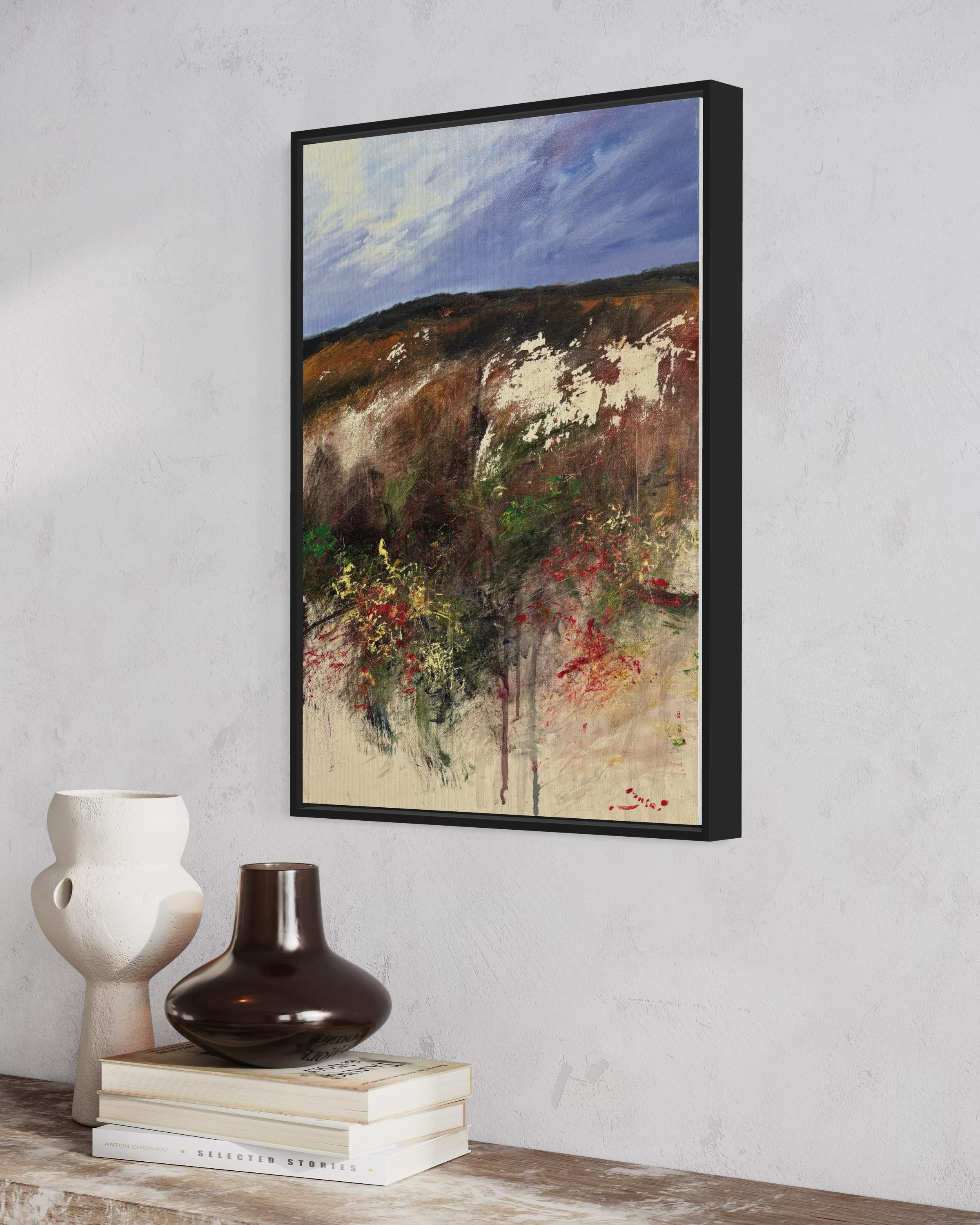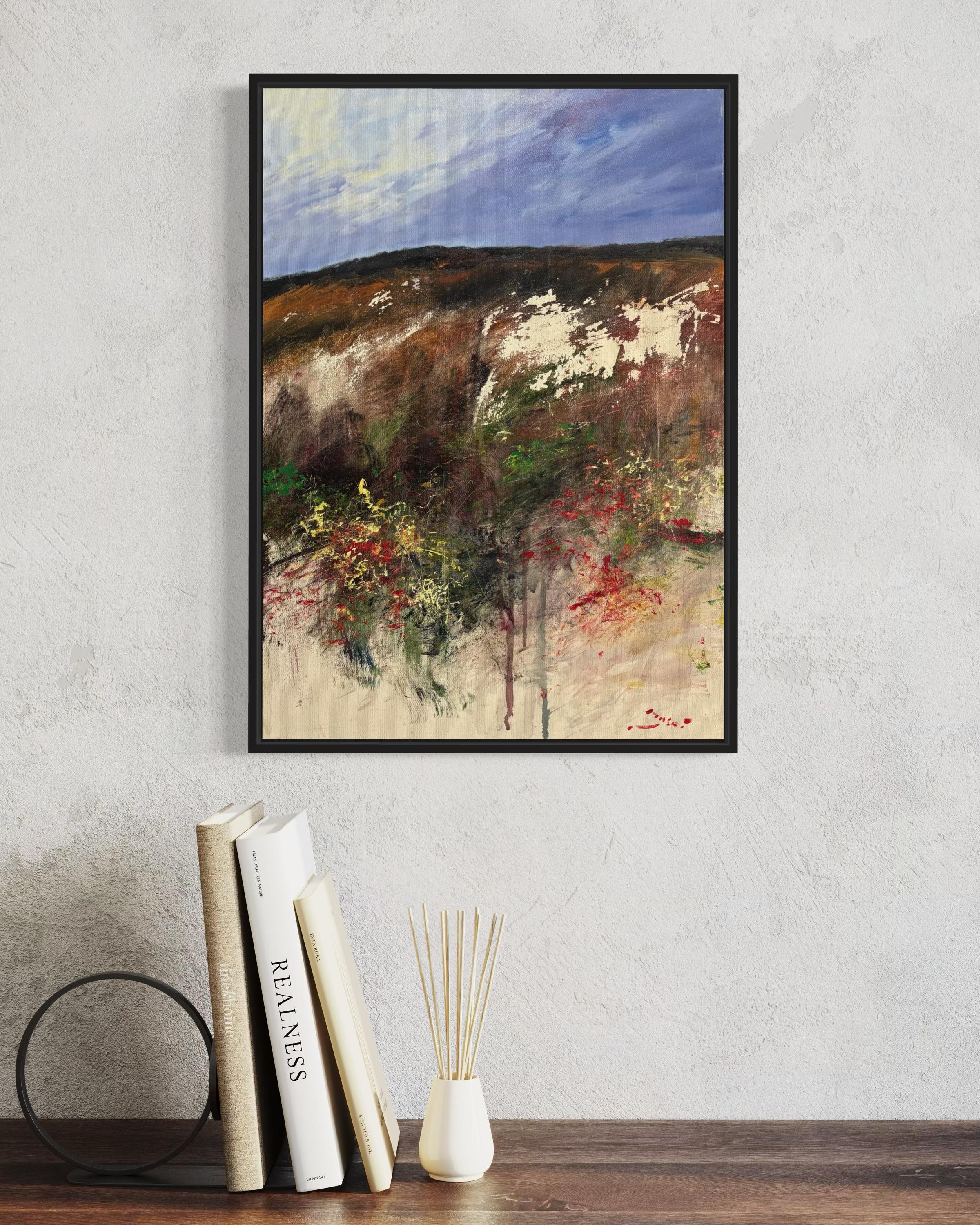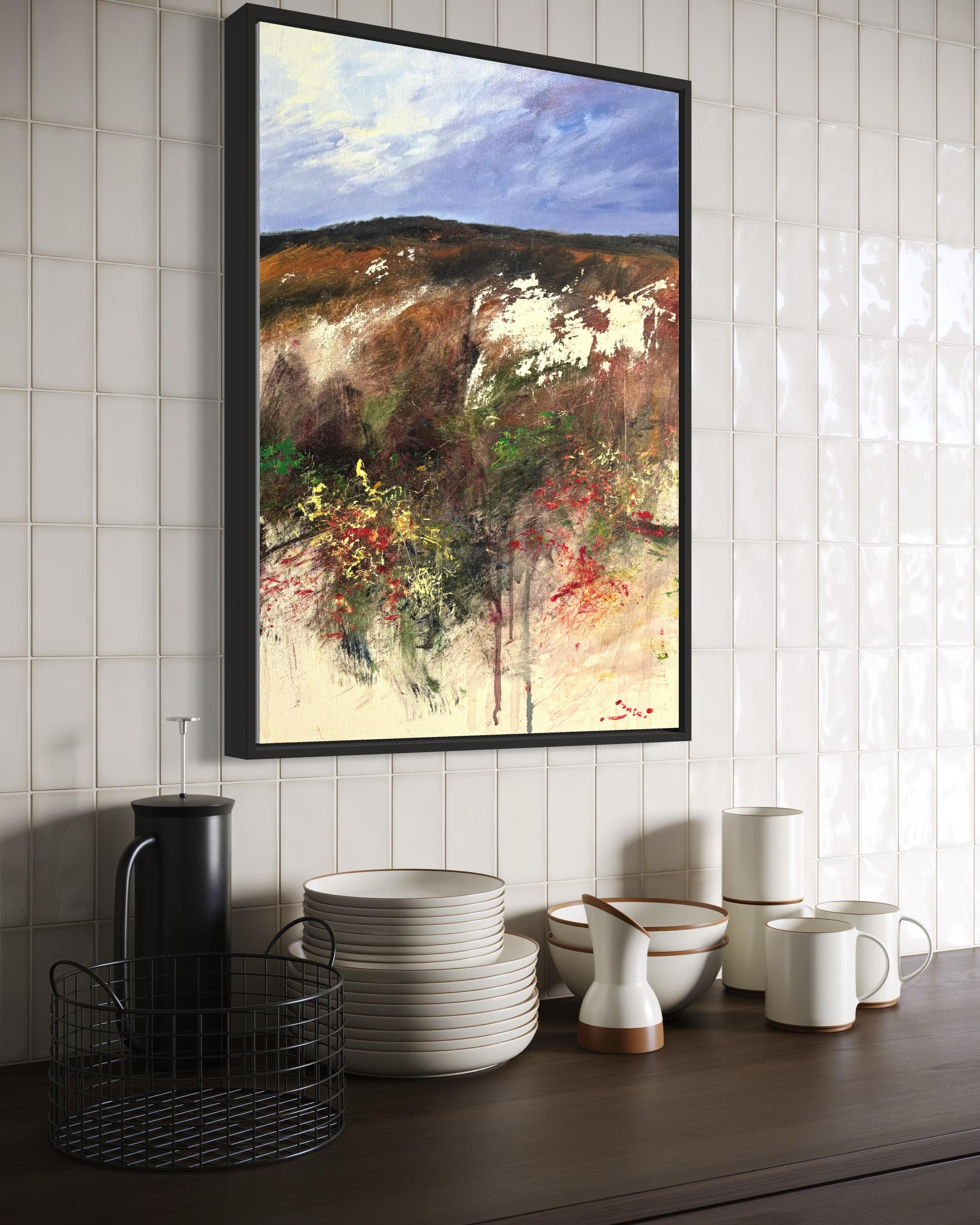 "Montaña en Florencia" es una cautivadora obra en técnica mixta de 28" x 20" del artista Masri. Esta pieza presenta un evocador paisaje abstracto, con sus ricas texturas y su profunda paleta de colores que atraen al espectador hacia las onduladas extensiones que recuerdan a la campiña toscana. El cielo, pintado en un degradado de morados profundos y azules suaves, evoca los momentos de serenidad que preceden al crepúsculo. La montaña, bañada en marrones, blancos y sutiles toques de verde, muestra la maestría de Masri para crear profundidad y movimiento. Brillantes salpicaduras de flores rojas y amarillas crean contraste, añadiendo vida al accidentado terreno. El estilo, aunque abstracto, capta maravillosamente la esencia y el estado de ánimo de los paisajes que rodean Florencia. Esta obra de arte no es sólo un placer visual, sino un viaje, que invita al espectador a sentir el suave abrazo de una tarde florentina.