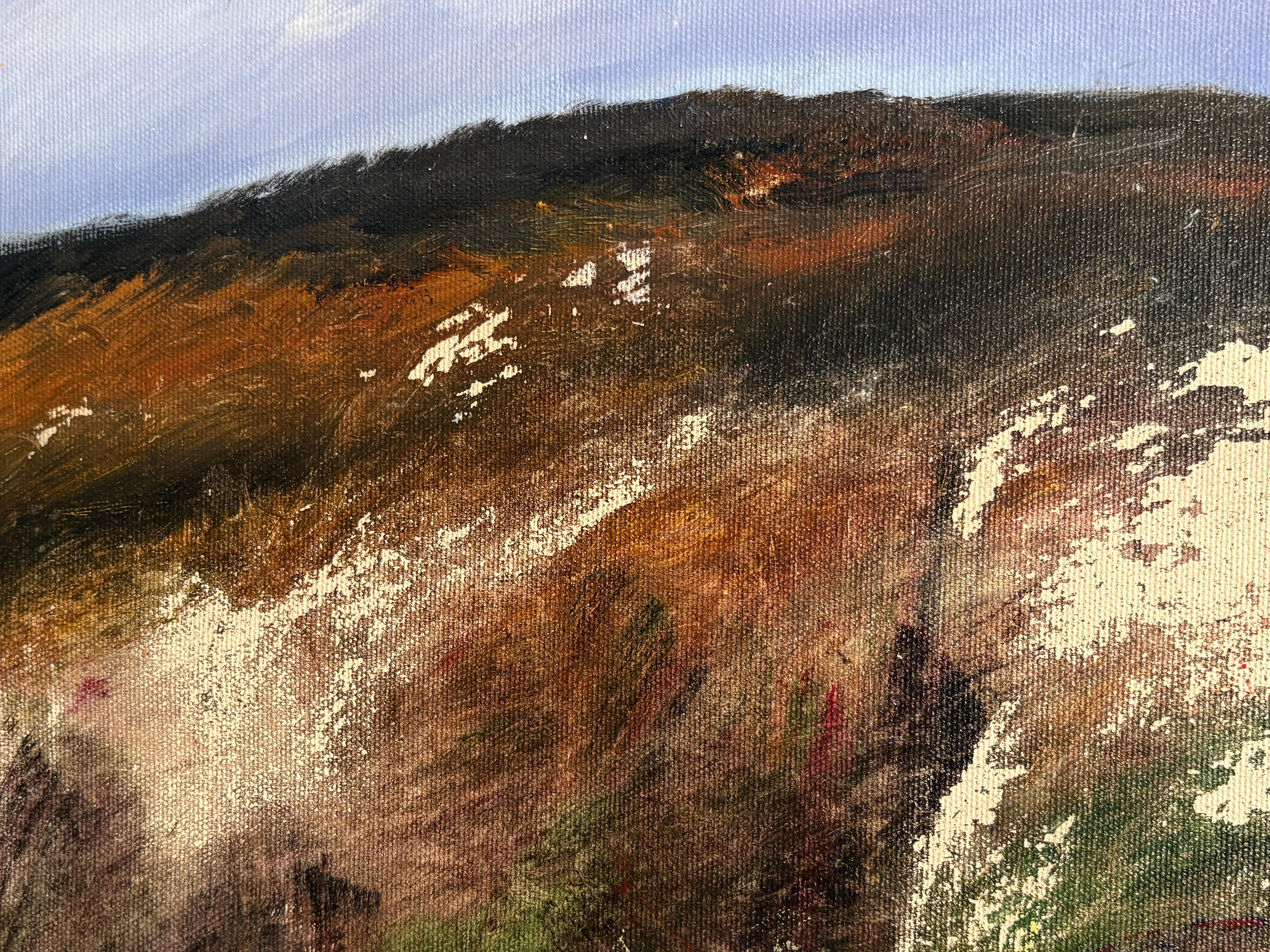 Pintura al óleo contemporánea semiabstracta naturaleza montañas paisaje sobre lienzo