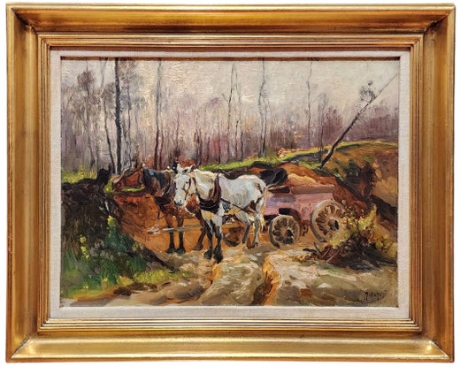Dos caballos y un carro, Impresionista, Artista de Michigan, Mathias Alten
