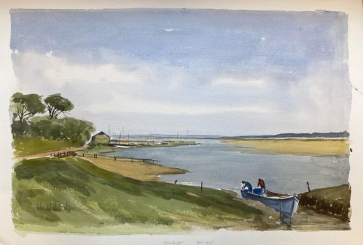 Preciosa acuarela original del popular y admirado pintor británico Ronald Birch, activo en la década de 1970. Su manejo fluido y magistral de la acuarela, la forma tradicional de la pintura paisajista británica, capta el paisaje, los pueblos y las ciudades británicos con enorme habilidad, así como la atmósfera.