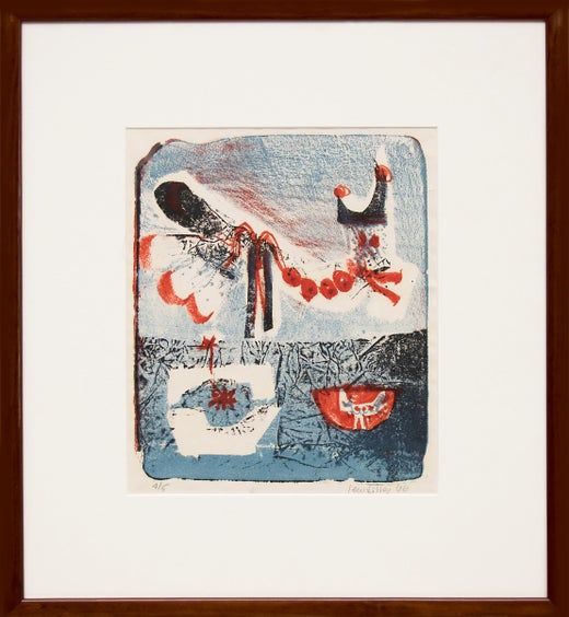 Este llamativo óleo semiabstracto sobre lienzo de mediados de siglo del conocido modernista de Denver Paul K. Smith capta la vibrante energía del estudio de un artista. Pintada a med...