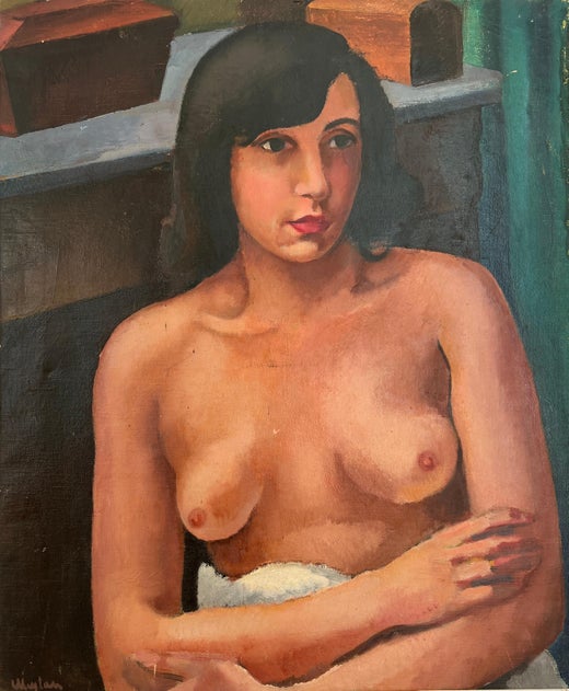 Georges Pacouil (1903-1996) - Óleo enmarcado de mediados del siglo XX, Muñecas en un sillón