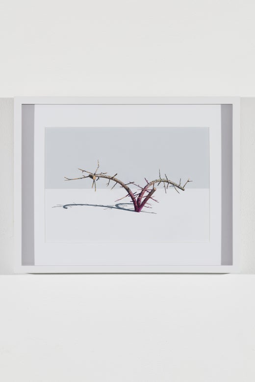 Muchos canadienses se aventuran a ir a la casa de campo o al chalet los fines de semana y en vacaciones, mientras que ciudades como Montreal presumen de tener uno de los mayores parques del mundo, donde muchos urbanitas pasan los largos días de verano a la sombra de los árboles. Los padres de los suburbios, como en todas partes, se obsesionan con tener un jardín lo bastante grande para los niños y el perro, y hacen la guerra a la hierba y los setos, imitando los prístinos céspedes verdes que originalmente pretendían recordar las propiedades muy cuidadas de los ricos británicos. Como humanos, somos animales y, por tanto, parte de la naturaleza, pero nuestras tendencias destructivas hacia nuestro hábitat son innegables. Intentamos contener, moldear y explotar la tierra que nos vio nacer. ¿Cuánto falta para que toda la naturaleza esté contenida en pequeños recintos ordenados, como en estos cuadros? Al acercarnos a contemplar estas pequeñas obras sobre papel, enmarcadas en formas blancas que recuerdan ventanas que se funden u ojos de buey de un barco, encontramos rastros de humanidad. Una bañera de patas de garra azul cobalto escondida entre la densa y oscura maleza, elípticas rosa Barbie y cintas de correr azul bebé alineadas como si estuvieran en un gimnasio, mesas vacías que podrían pertenecer a una casa de muñecas, sólo que a tamaño real. Un árbol crece en la base de corcho de un frasco de campana, rodeado de piedras paisajísticas en una isla donde una criatura de color azul hielo es el único habitante. Estas obras conllevan un aura de ansiedad climática, así como de misterio y tranquila reverencia.