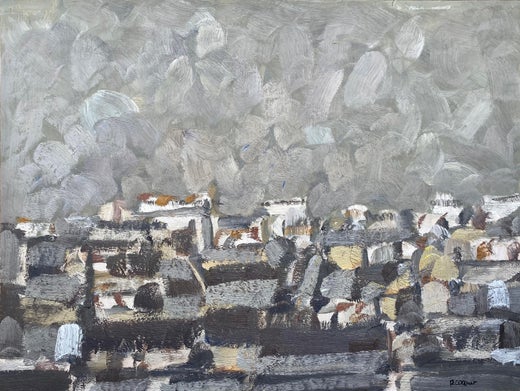 Vista de París con edificios, óleo de Françoise Juvin