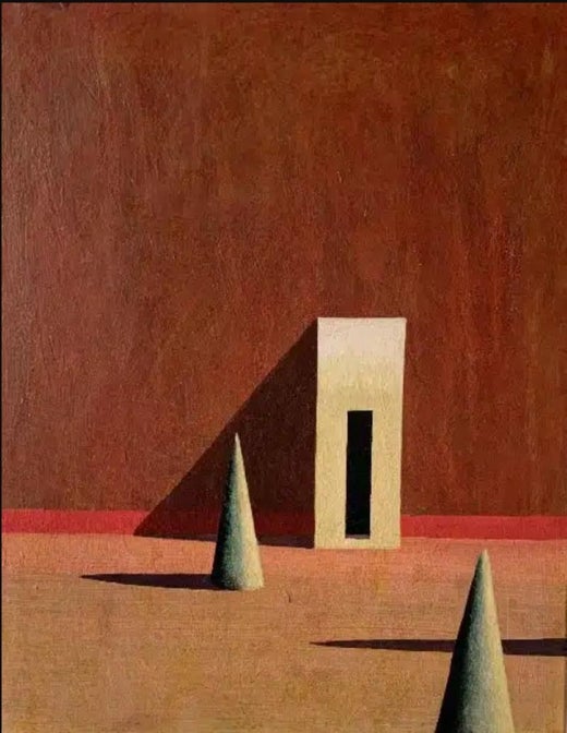 El pintor catalán Ramón Enrich crea imágenes hipnóticas y surrealistas llenas de formas geométricas y arquitectónicas, como casas de tejado plano, laberintos de escaleras y árboles cónicos. Su inconfundible estilo cuadriculado recuerda a la planificación de edificios, y se une a un sofisticado uso del color y la luz.