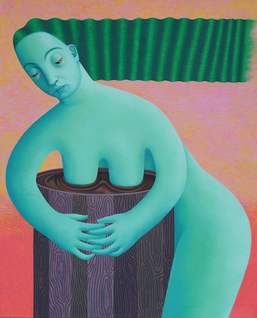 Grace Ramsey (estadounidense, nacida en 1985) Grace Ramsey es una pintora autodidacta afincada en Charlotte, Carolina del Norte. Antes de establecerse como artista visual, pasó más de una década como artista de circo, experiencia a la que atribuye sus atrevidas paletas de colores y sus líneas arrolladoras. La obra de Ramsey explora la elusividad de la identidad personal y la rica experiencia de las narrativas emocionales implícitas. La emoción es, de hecho, fundamental para la artista, y su objetivo es evocar reacciones apasionadas de sus espectadores mediante un equilibrio dinámico de representación y abstracción.