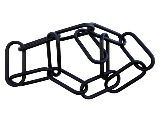 Esta llamativa pieza de forma trapezoidal se creó con fibras naturales tejidas de color verde malaquita.