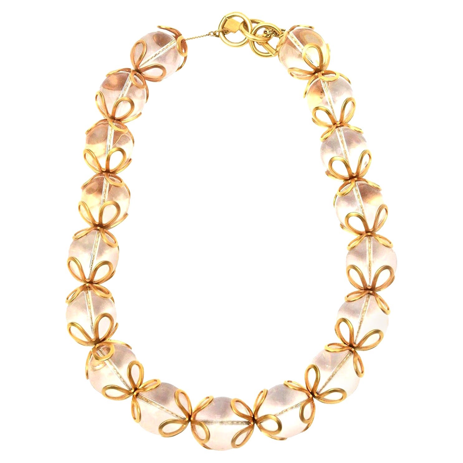 Collar de lazo vintage Anne Klein de lucita y bolas rellenas de oro