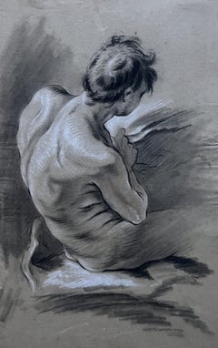 Fino dibujo de estudio anatómico académico moderno de la década de 1930 de un modelo masculino desnudo sentado (torso), del famoso artista de Chicago Harold Haydon (Am. 1909-1994). ...