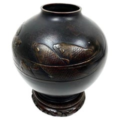 Jarrón japonés de bronce de principios del siglo XX, Showa, con firma de artista