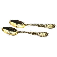 Juego de 12 cucharas de postre holandesas de plata y una cuchara grande de servir de plata con mango retorcido y ovalado con b...