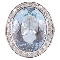 Topacio color aguamarina, zafiros, diamantes, anillo de oro rosa y plata.
