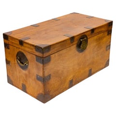 Se trata de un impresionante baúl chino antiguo de madera de alcanfor con herrajes de latón y una interesante escena de un paisaje desértico, datado hacia 1920.