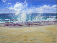 Este cuadro contemporáneo de la playa de Boulders presenta una interpretación estilizada y pictórica de la costa. A la izquierda, un acantilado rocoso d...