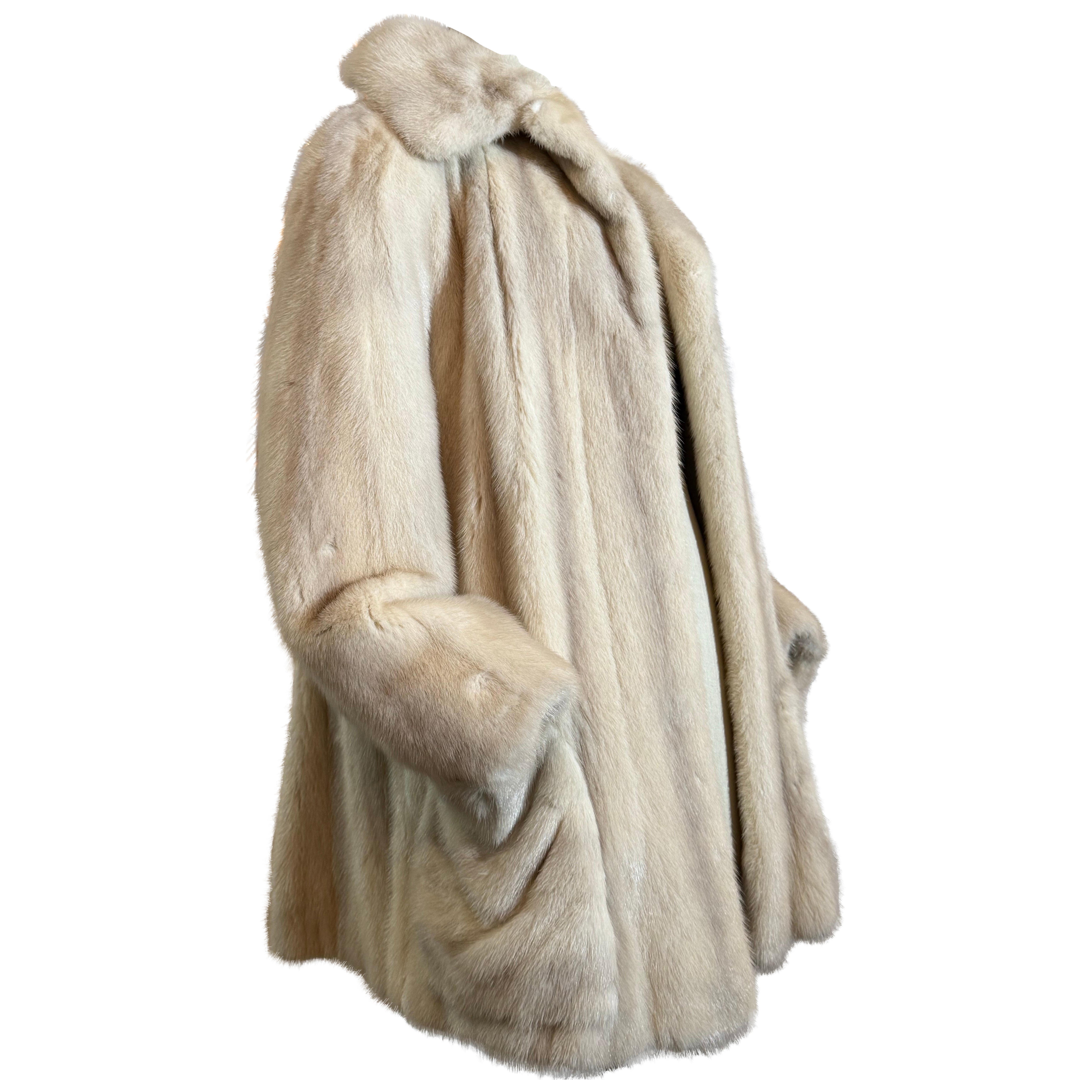 Años 60 James Galanos Lujoso abrigo de piel natural de visón azul grisáceo Azurene: Una lujosa piel natural de un diseñador americano clásico en su mejor momento. Forma ligeramente o...