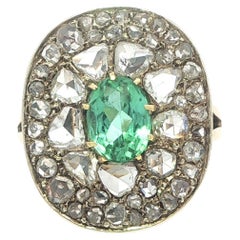 Anillo en Racimo Ovalado de Esmeraldas y Diamantes, Estilo Eduardiano, Estampado en Platino