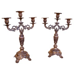 Par de Candelabros Antiguos Franceses del Siglo XIX de Bronce Dorado Estilo Luis XV