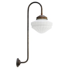 Este par de grandes apliques de pared italianos de la década de 1950 combina pantallas de cristal opalino suavemente curvadas con esbeltos brazos de latón para lograr una refinada pr...