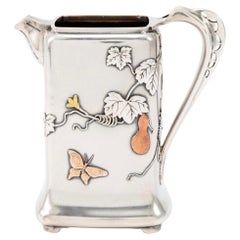 Caprichosa cremera de colibrí de plata Los Castillo, azucarero con tapa y cucharón a juego, hechos a mano en Taxco Mexico, hacia la década de 1960. Cada recipiente está acentuado con...