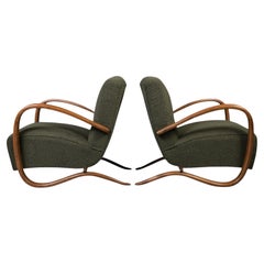 Sillón, modelo "H-269", diseñado por Jindřich Halabala. Producido por Spojené UP závody Brno en la antigua Checoslovaquia, años 30. Apoyabrazos de haya teñida, recientemente retapiza...