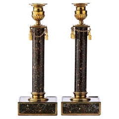 Pareja de candelabros neoclásicos italianos de madera tallada de finales del siglo XVIII