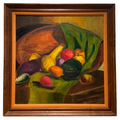 Precioso óleo francés de época sobre lienzo estirado, fechado en 1935 y firmado por el artista B. Salmon en la esquina inferior izquierda. Este refinado bodegón representa un cuenco ...