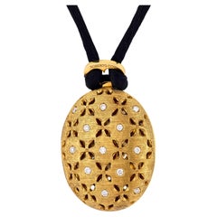Colgante de medallón de huevo dorado con esmalte guilloché imperial, Maestro Feodor Afanasiev