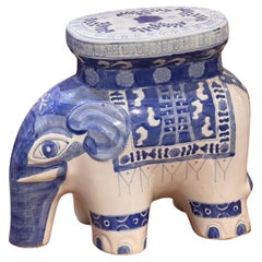 Taburete de jardín, asiento de maceta o mesa auxiliar de elefante de cerámica esmaltada de mediados del siglo XX. Hecho a mano de cerámica. Un bonito complemento para tu casa, patio ...