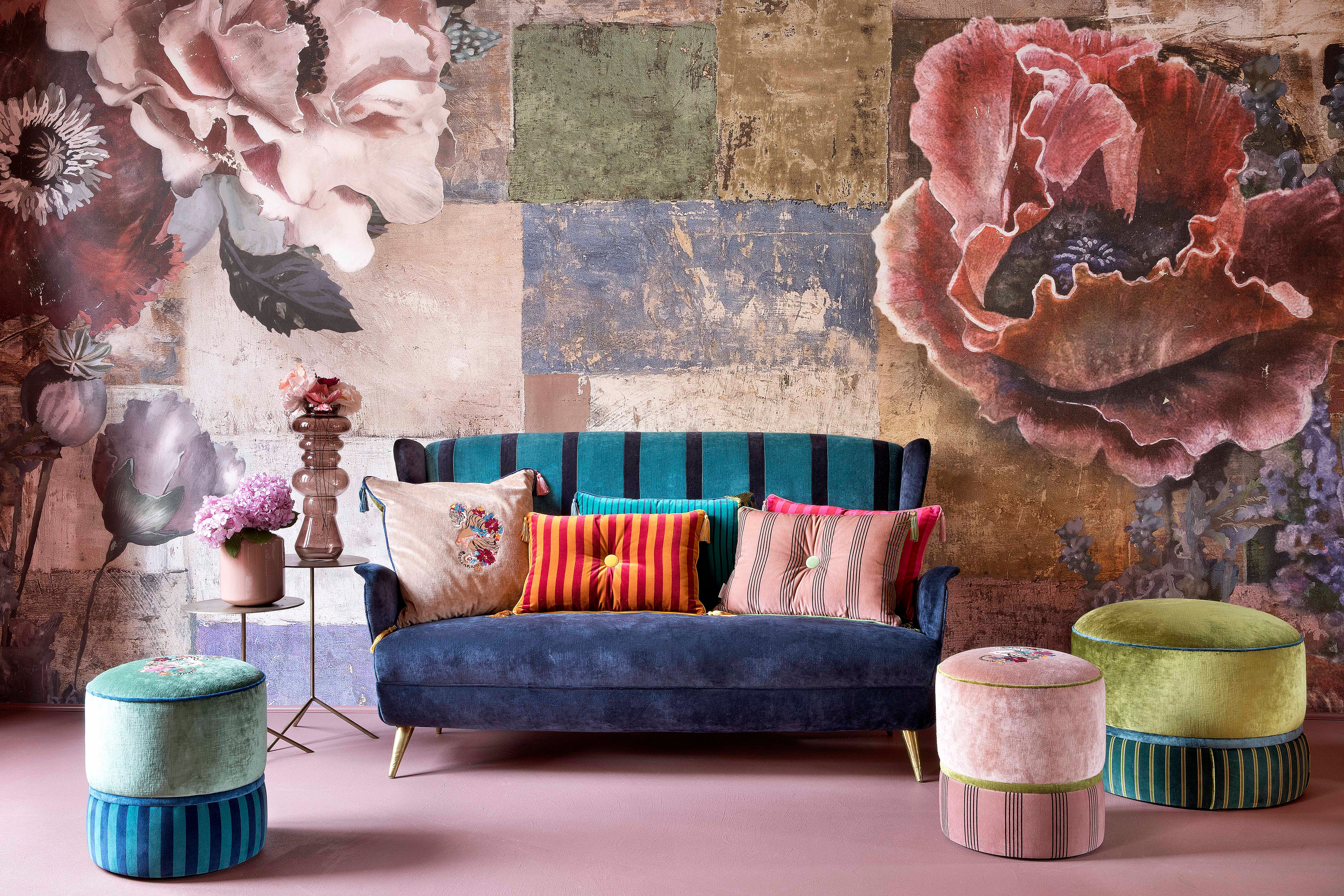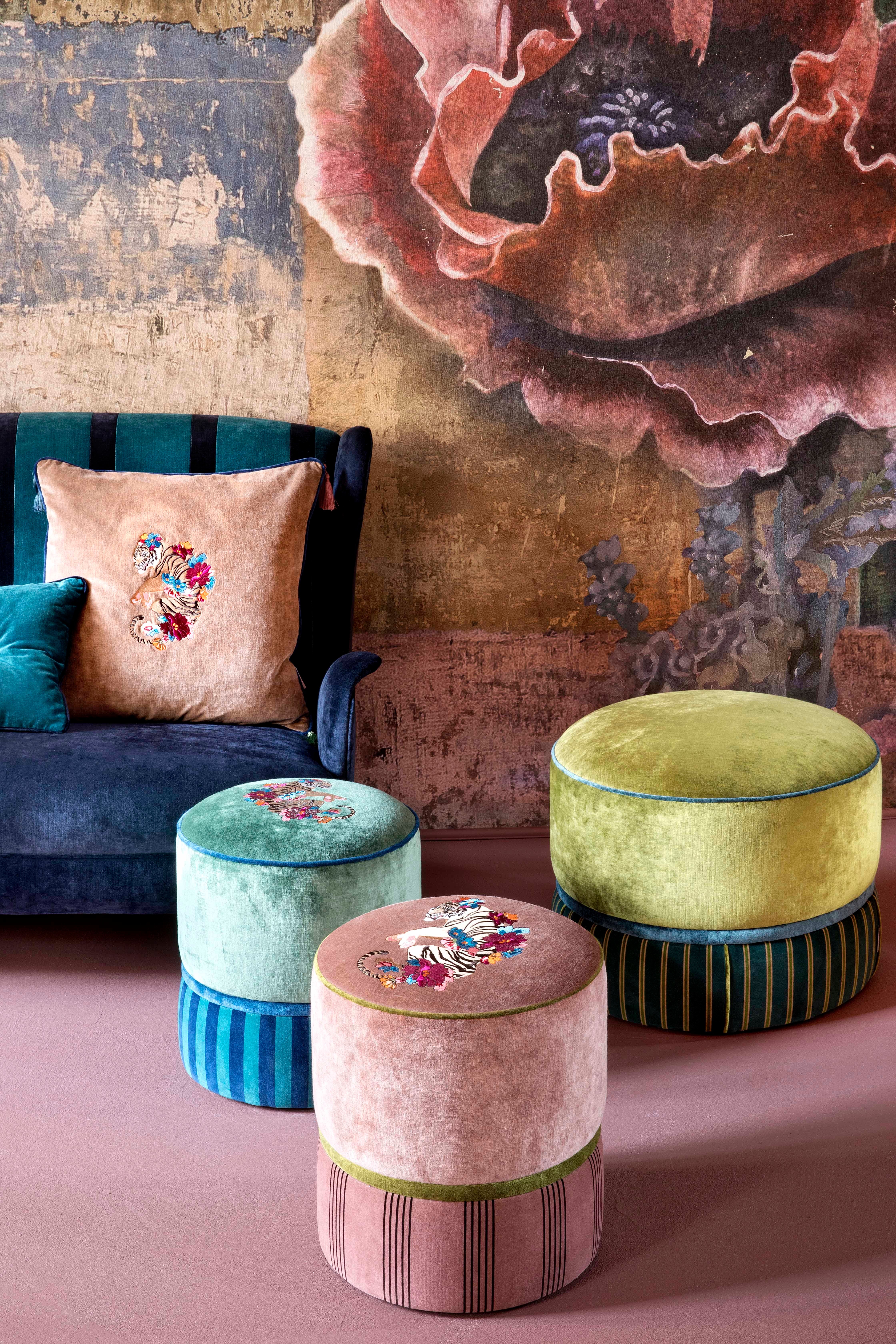 Meticulosamente confeccionados con terciopelo de algodón a rayas y hechos a mano con tejidos de autor, estos cojines de Carlotta Oddone son un testimonio de belleza