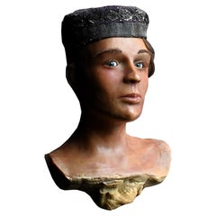 Excepcional busto de alabastro tallado a mano, traje florentino, siglo XIII