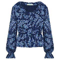 Delicada blusa abotonada de gasa de seda fina con detalle de cuello ascot con volantes. Completamente transparente. Por The Silk Farm. La talla marcada es una vintage 8, pero la blus...