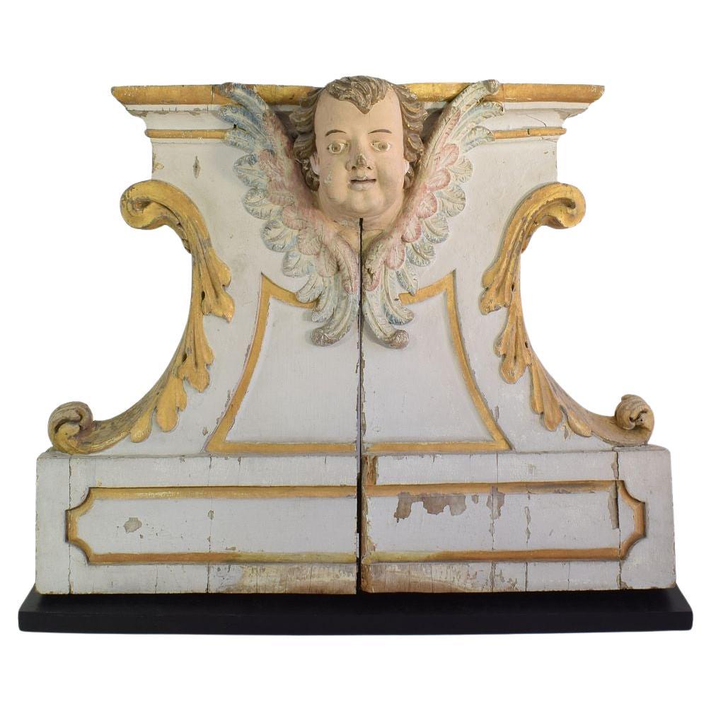 Nicho de altar barroco francés del siglo XVII de roble tallado con cabeza de ángel