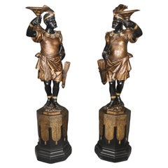Magnífica pareja de esculturas de madera dorada y policromada de finales del siglo XV, haci...