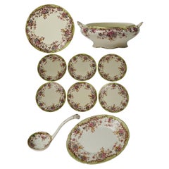 Fines del siglo XIX Art Decó Antiguo Vajilla inglesa, cerámica, plata y vidrio