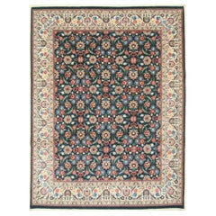 Alfombra moderna de lana de estilo bidjar anudada a mano en azul con diseño de inspiración persa