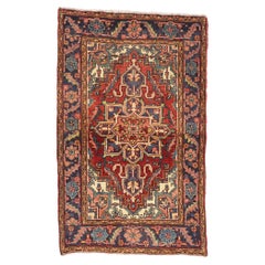 Fina alfombra antigua Heriz anudada a mano con un diseño geométrico. Esta alfombra mide 1'11" x 2'6".